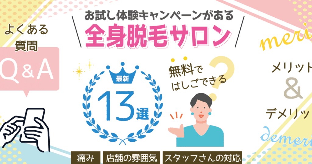 全身脱毛を考えている私たちにとって、料金が気になるのは当然です。全身脱毛のお試し体験ができる料金が安いキャンペーン一覧を知ることで、理想のツルツル肌に一歩近づけます。脱毛サロンの数は増えており、それぞれに魅力的なキャンペーンが用意されていますが、どれが本当にお得なのか見極めるのは難しいですよね。
