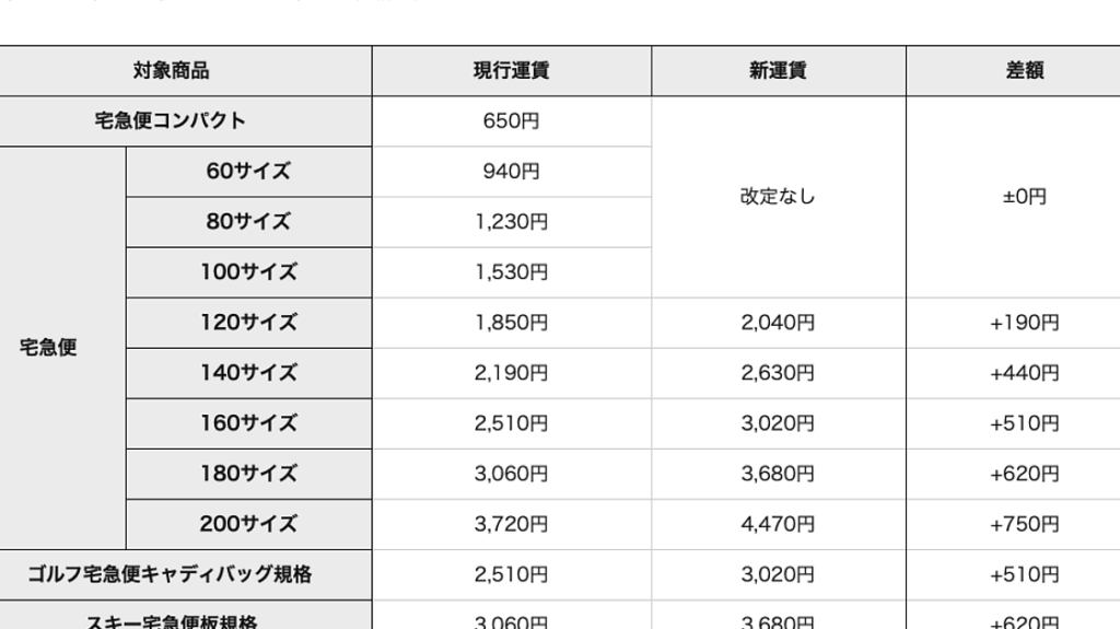 ヤマト運輸の料金体系は、荷物のサイズと宅急便のサービスによって異なります。例えば、以下の点に注意が必要です。