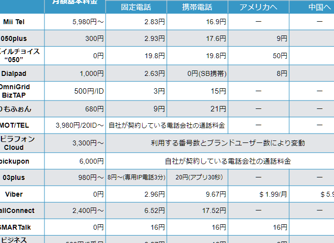 | IP電話 | 500〜1,500円 |