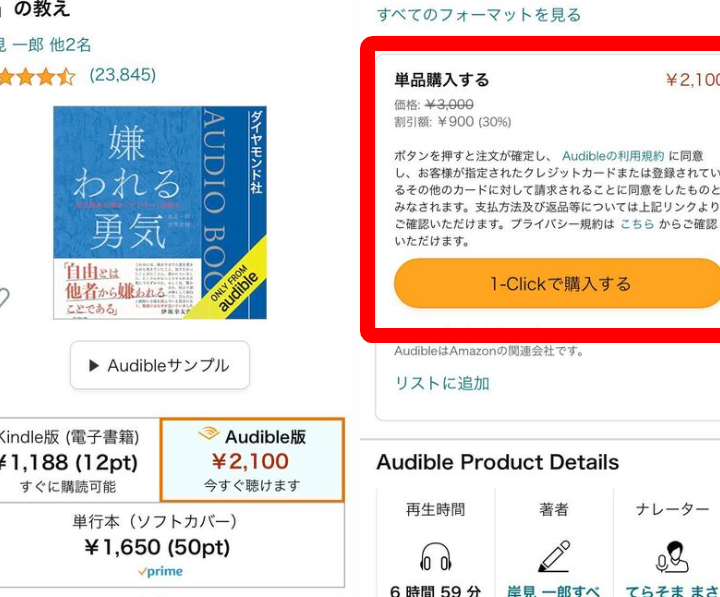 - クレジットの獲得: 1冊のオーディオブックを購入するためのクレジットが含まれています。