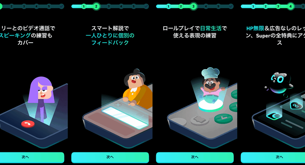 - 学習が楽しいと感じるユーザーが多いです。 ゲーム感覚のレッスンは飽きが来ないように設計されており、継続的に利用する動機になります。