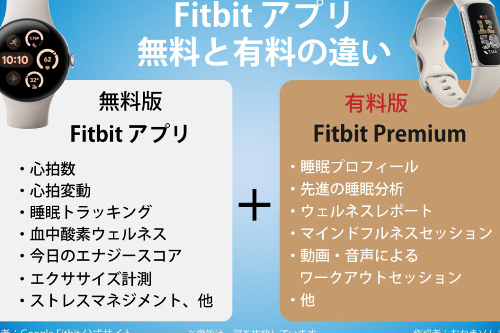 - Fitbitは専用デバイスを必要とし、無料プランが存在するものの、プレミアムサービスは月額約2,500円です。