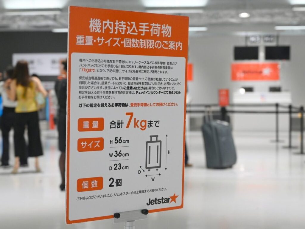 なお、手荷物制限も確認が必要だ。通常、ジェットスターでは身の回りの荷物は、7kg以下かつ一定のサイズ制限がある。例えば、54cm x 38cm x 23cm以内の手荷物を持ち込むことができる。この制限を超えた場合、追加料金が発生する場合があるので注意が必要だ。