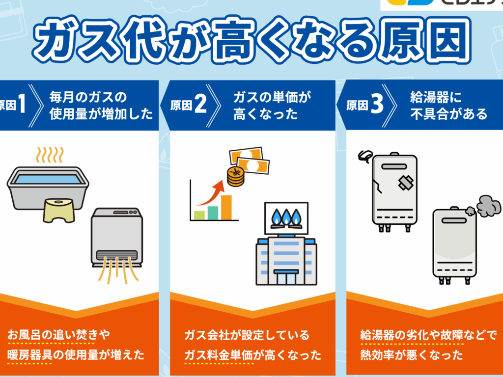 ガス料金は、基本料金と使用量に基づく従量料金に分けられる。基本料金は、月々の固定費として計上される。使用量に応じた従量料金は、ガスの消費にリンクしてくる。一般的に、家庭でのガス使用量は、暖房や給湯に関連し、多くの場合、冬季にピークを迎える。