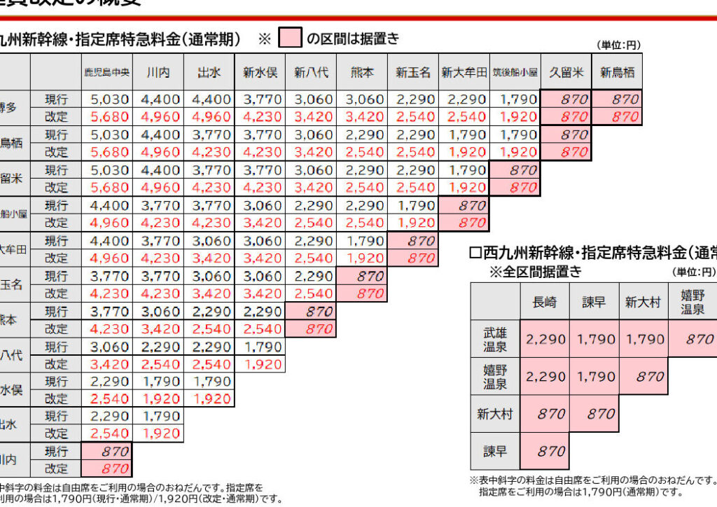 | 無座席料金 | 約2,500円以下 |