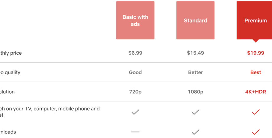 - Netflix: 月額980円からスタートし、多様なコンテンツを提供。独自制作のオリジナル作品も評価されていますが、広告なしプランは1,480円からです。