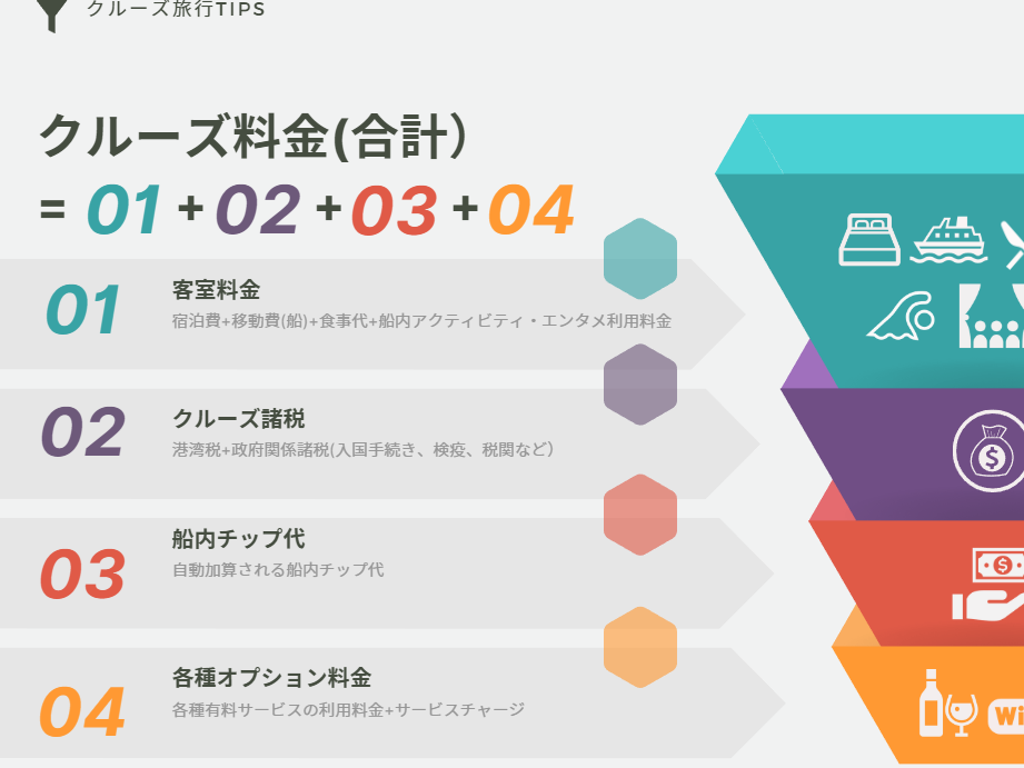 次に、キャビンの種類によっても料金が異なる点に注意が必要です。内部キャビン、海側キャビン、バルコニーキャビン、スイートルームのそれぞれに価格帯が設定されており、選択次第でコストが大きく変わります。また、各プランの内容についても理解を深めることが大切です。