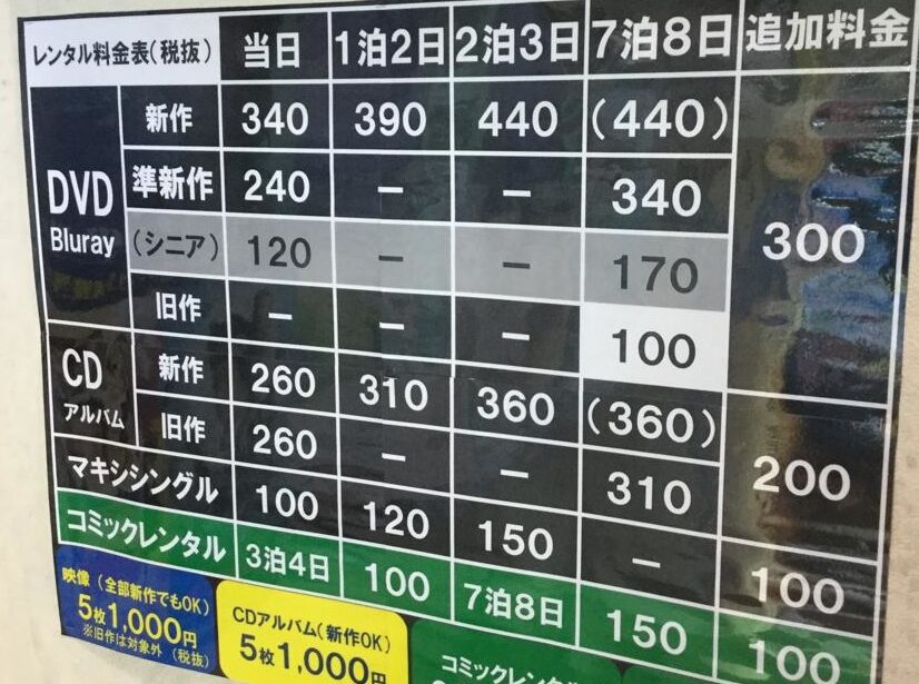 tsutayaのレンタル料金の概要