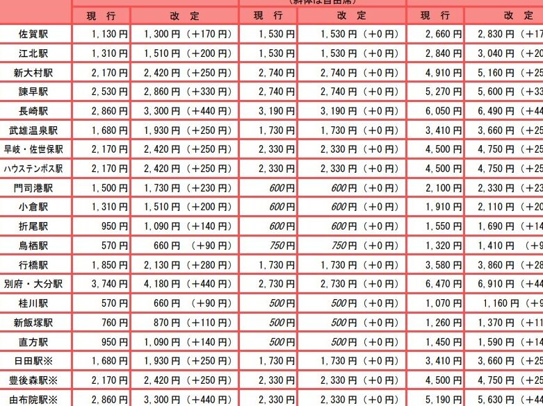 小倉から大分までの特急料金は、選択した列車や座席クラスによって異なります。以下に、具体的な運賃を示します。