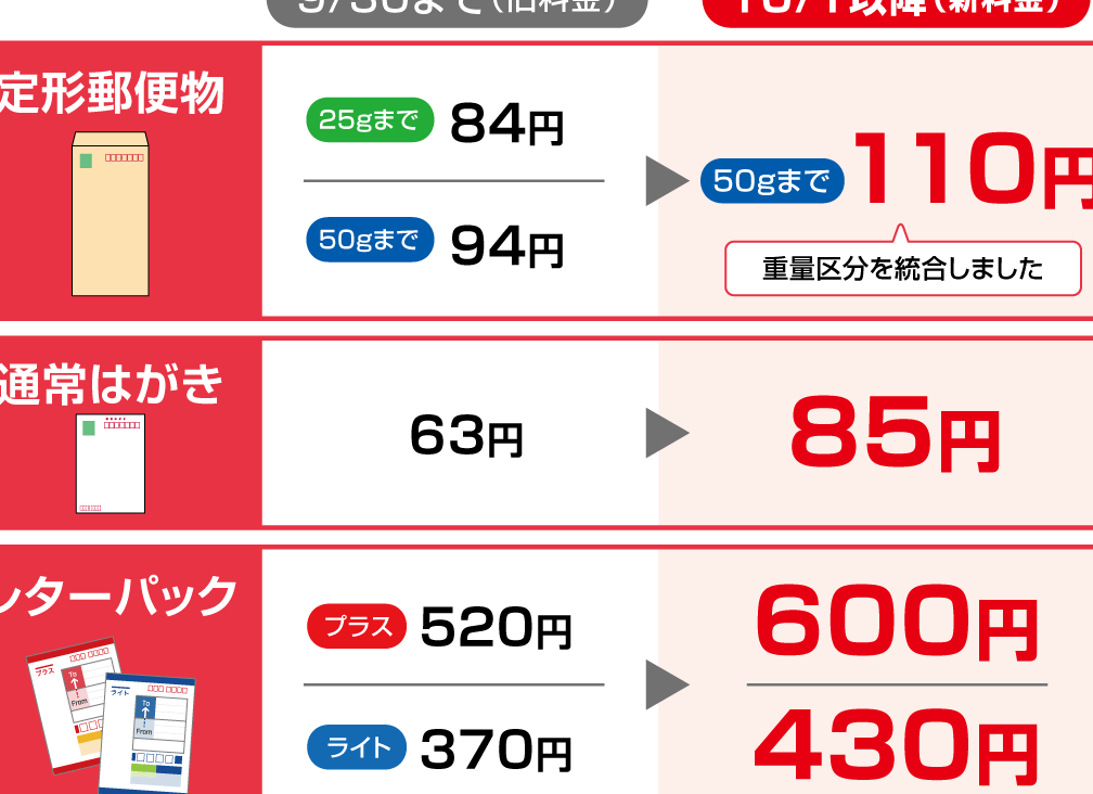 郵便料金84円の次はいくらですか