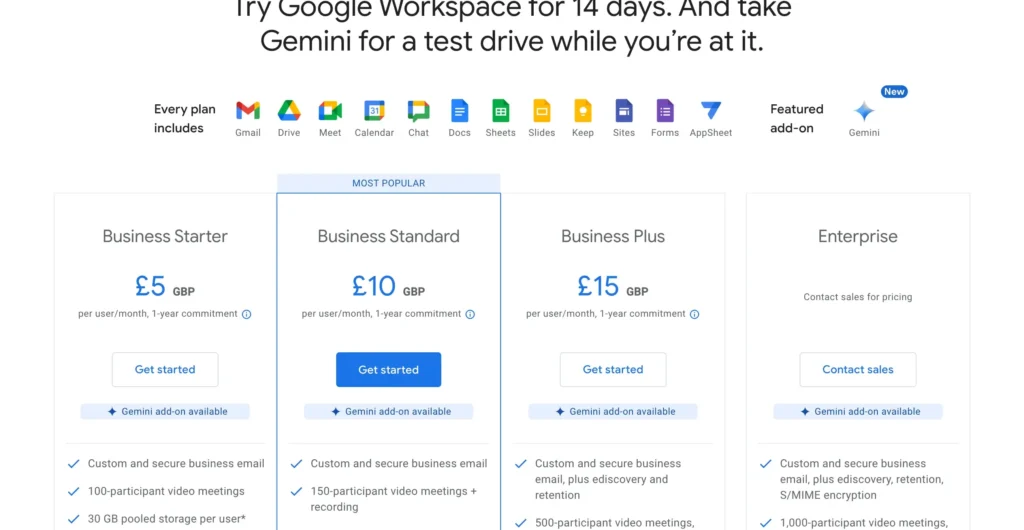 - Google Workspace Individual: 自営業向けで、より多くの機能を提供します。