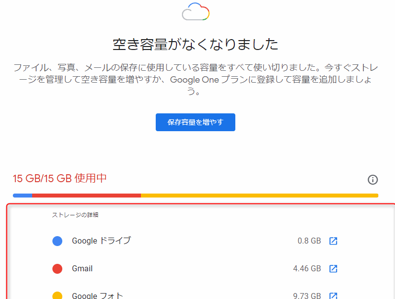 - 15GBまでは無料: Googleアカウントを作成すると、最初に15GBのストレージが提供されています。この容量は、Google Drive, Gmail, Google Photosなどで共有されます。