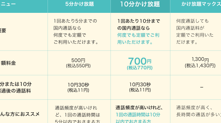 | キャリア | 料金(10分) |