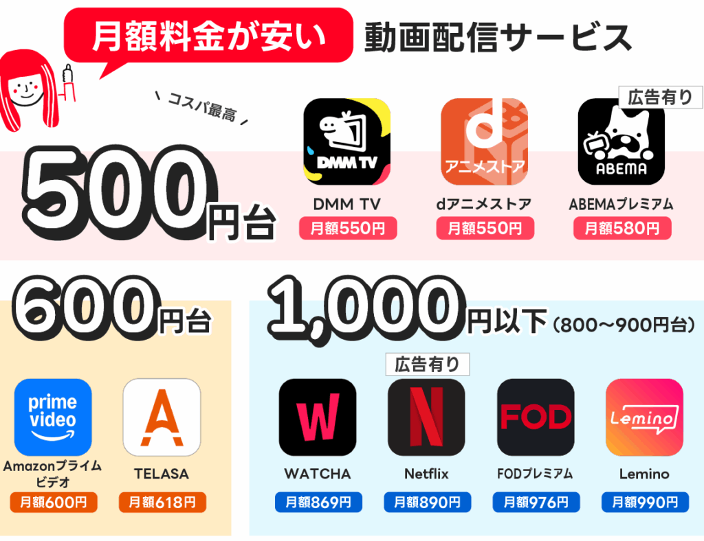 VODサービスにはさまざまな料金プランがあるため、比較が重要です。ここでは主なサービスの料金プランを詳しく見ていきます。