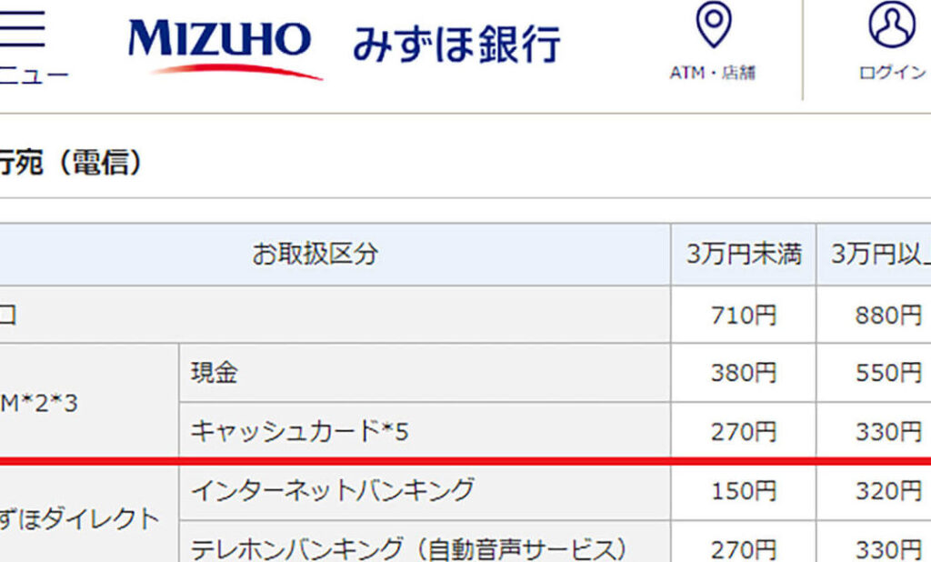 - みずほ銀行: 標準的な振込料金は540円、ただし平日は540円から1,100円