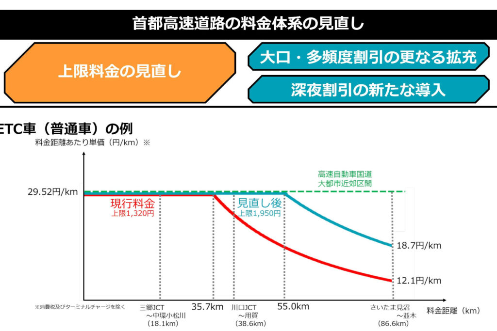 - 主要インターチェンジ間の距離: 通常、距離が長いほど料金が高くなる。