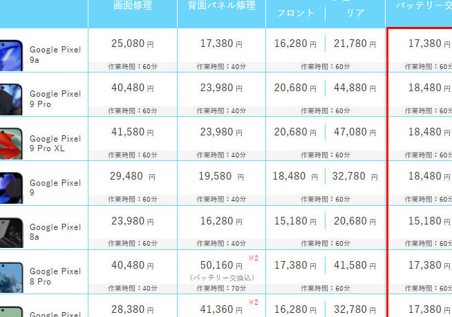 google ピクセルのバッテリー交換にかかる料金は、モデルによって異なる。モデル別の料金を確認することで、具体的なコストを理解できる。以下に、主要なモデルのバッテリー交換料金を示す。