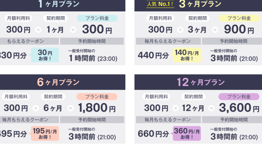 - スタンダードプラン: 月額500円。予約機能が充実し、割引特典が得られます。