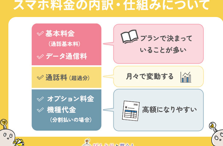 - データ通信料金:インターネット利用に関わる料金で、一定のデータ容量を超えると追加料金が発生します。