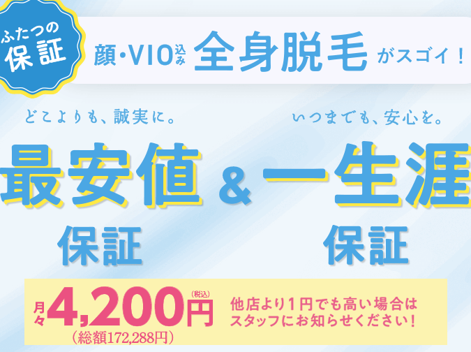 - 施術地域: 全身(脇、腕、足、背中、腹部、顔、VIOライン)
