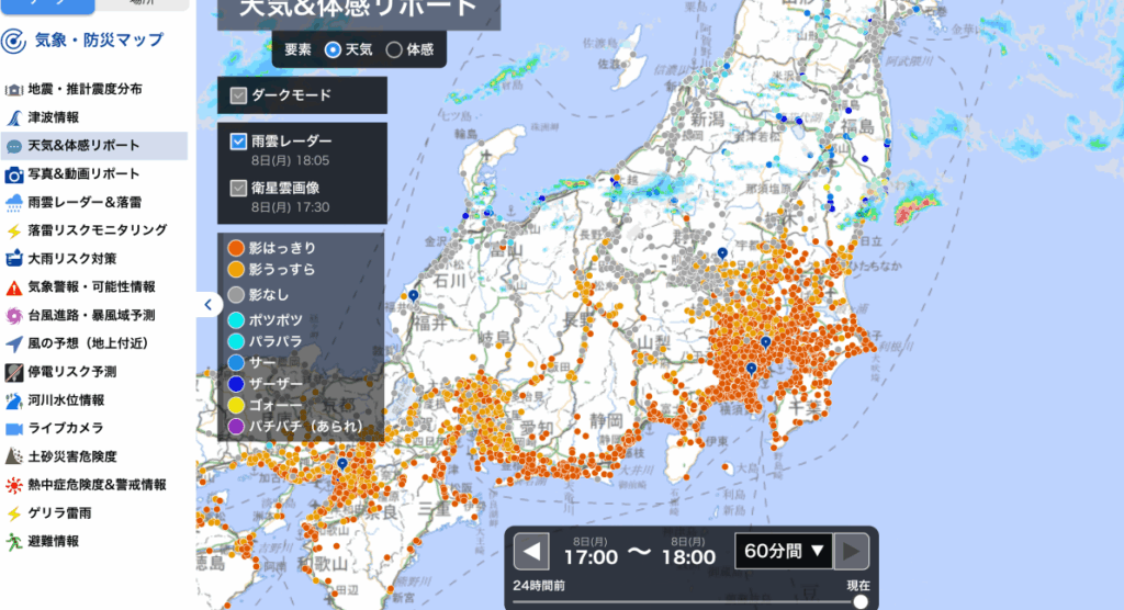 - 過去のデータ: 過去の気象情報へのアクセスが可能。