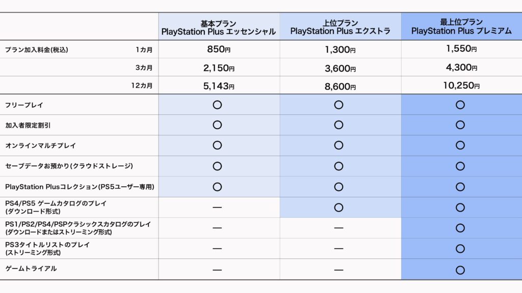 プレステプラスには月額プランと年額プランがあります。具体的な料金は以下の通りです:
