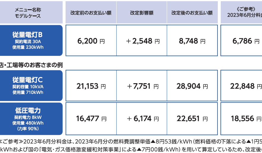 - 電力量料金: 使用量に応じて変動します