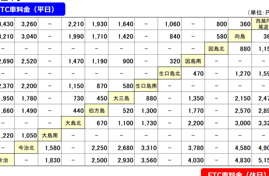 瀬戸大橋を利用する際の通行料金は、さまざまな要因に基づいて設定されています。料金を理解することで、旅行において予算管理がしやすくなります。