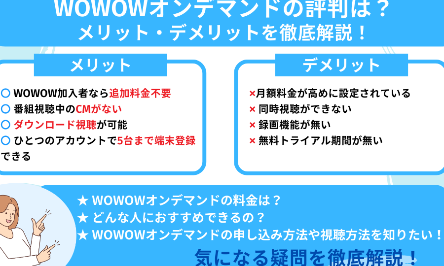 wowowは総合的に映画とスポーツに強く、特にプレミアムな作品にアクセスできます。我々の観点から、wowowの料金は適切な価値を提供しており、他サービスと比較しても魅力的です。