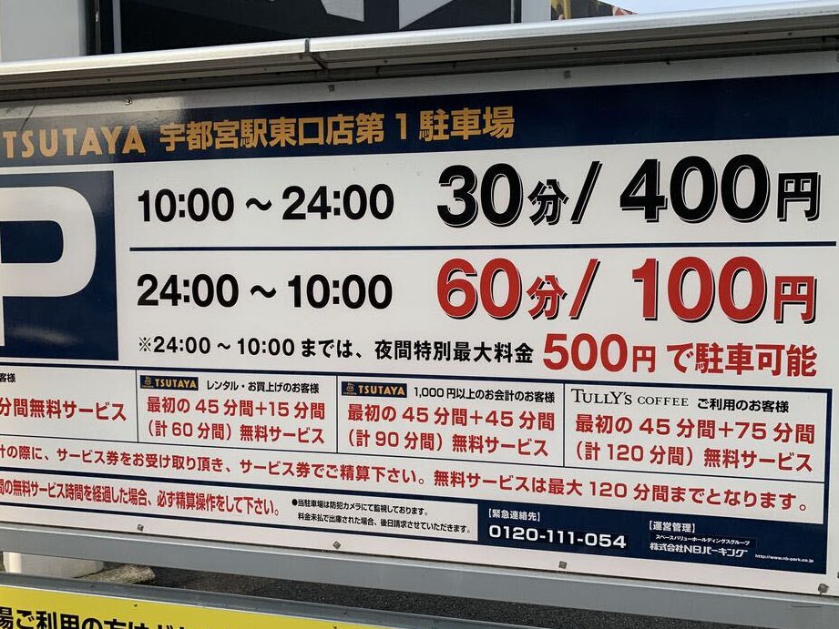 TSUTAYA宇都宮駅東口店舗の駐車場料金は、利用者にとって重要な情報です。ここでは、具体的な料金プランと割引情報を紹介します。