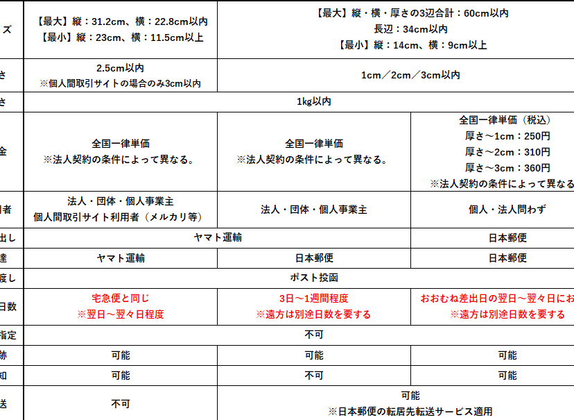 他の配送サービスとの比較