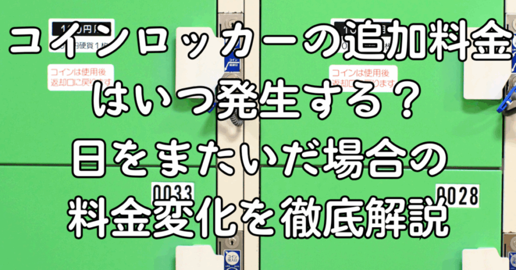 延長料金は、基本利用時間を超過した場合に発生する。一般的に、コインロッカーは1時間単位で料金が設定されていることが多い。したがって、以下の条件が関係してくる: