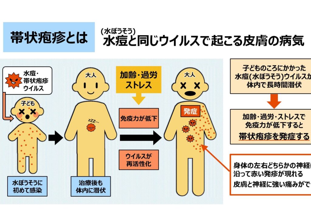 帯状疱疹は、水痘ウイルスが再活性化することによって引き起こされる皮膚病です。特に高齢者にとってリスクが高いとされ、痛みや皮膚の発疹が特徴です。私たちは、この病気を防ぐために帯状疱疹ワクチンの接種が重要であると認識しています。