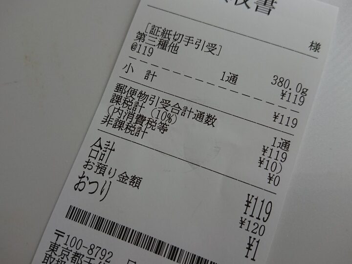 また、100gを超える場合は、10gごとに12円の追加料金が必要です。たとえば、200gの場合、基本料金104円に加え、100gを超えた分の12円が加算されます。
