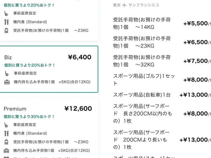 - 搭乗時期による違い: 冬休みや夏休みなどのピークシーズンには、料金が30%〜50%上昇することがある。