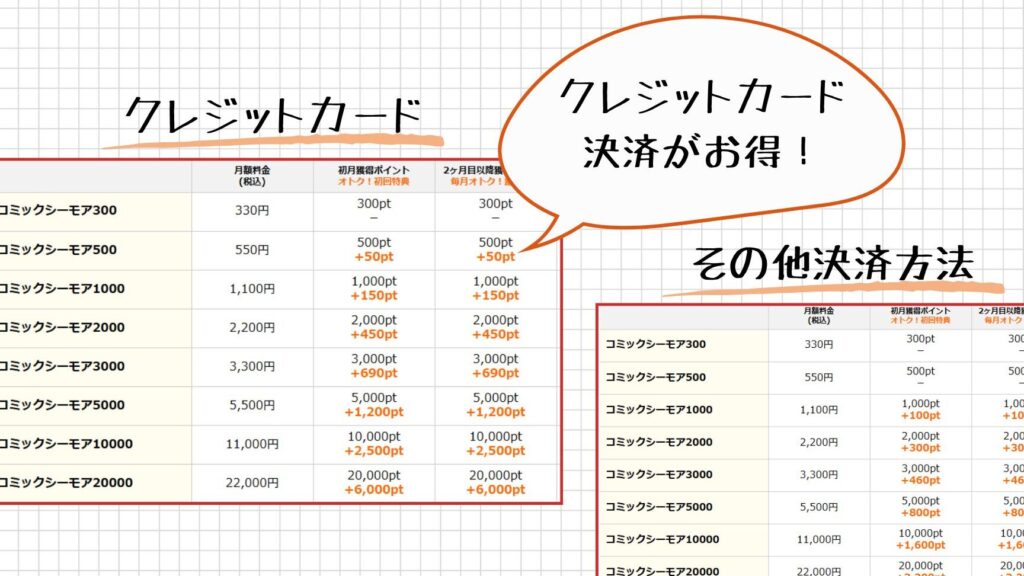 | ポイントプラン | 500円 | 購入時にポイント還元、作品購入に使用可能 |