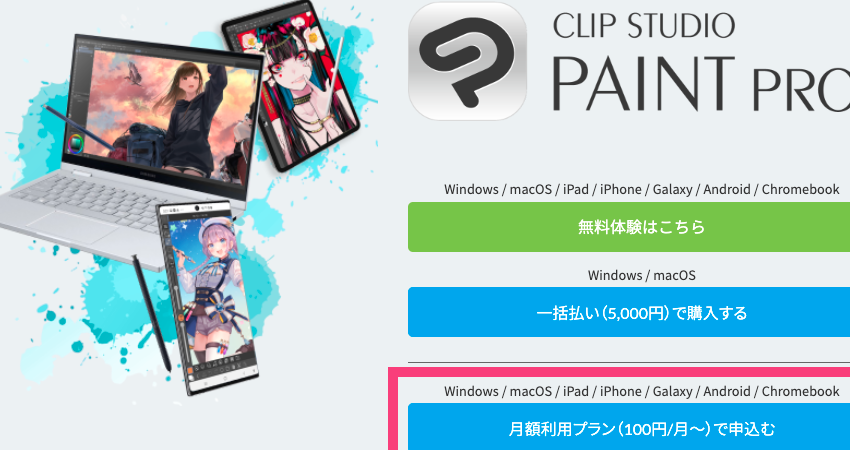 - クリップスタジオペイントの月額料金: 約480円(税込)から始まります。