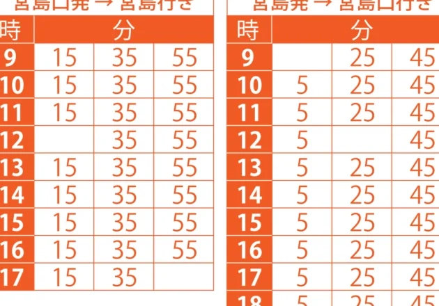 宮島口から宮島までのフェリーは、頻繁に運行されており、利便性が高いです。おおよそ30分ごとに出発し、時間帯によって若干の変動があります。特に観光シーズンや週末では、運行本数が増えることが多いです。