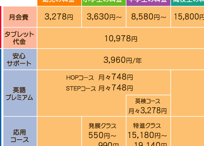 タブレットの初期金額も考慮する必要があります。タブレットは、約20,000円で購入できます。この金額にはソフトウェアが含まれていて、学習に必要なコンテンツが充実しています。また、初回登録時には割引が適用される場合もあり、検討する価値があります。