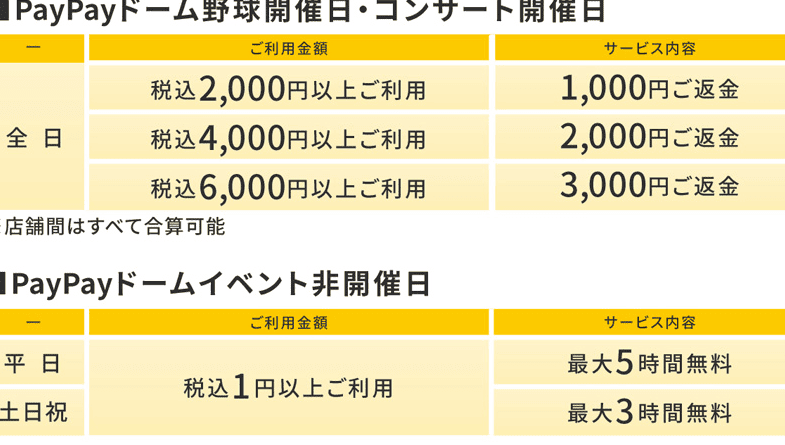PayPayドームの駐車場には、お得な料金プランが用意されている。これにより、訪れるファンは経済的に駐車場を利用することが可能だ。