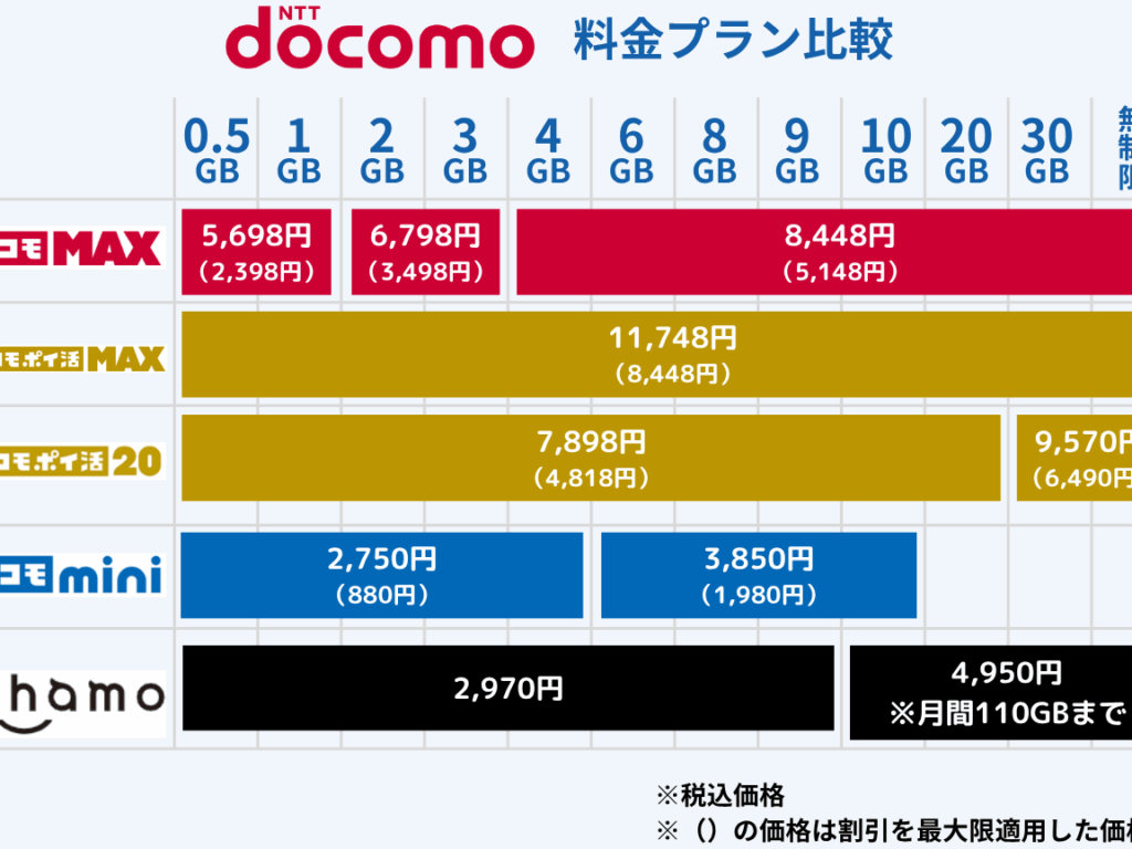 ドコモには次の料金プランが用意されています。