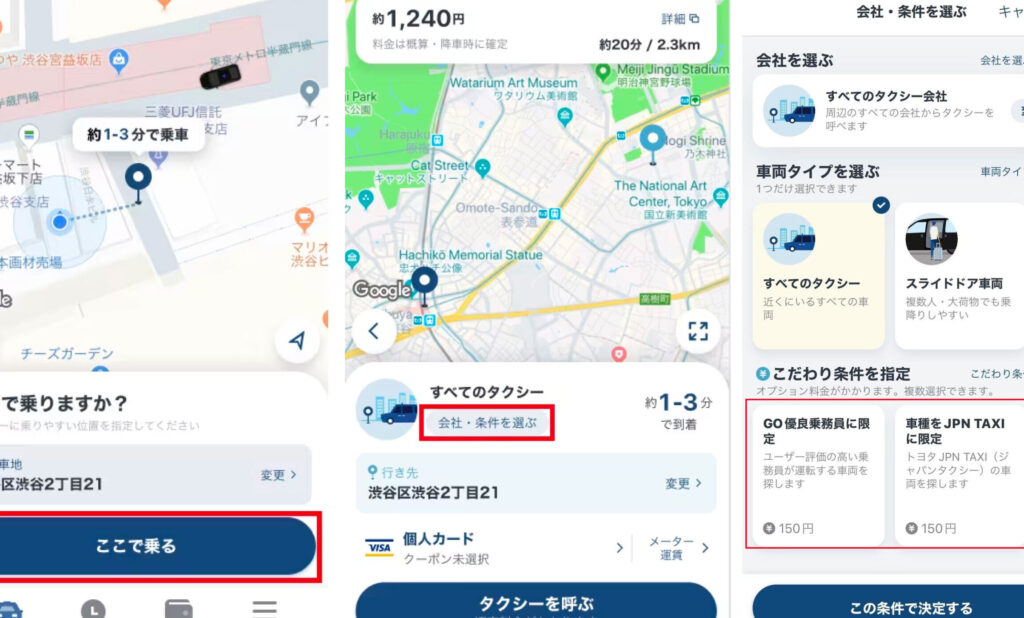 - 支払い方法: goタクシーは、クレジットカードや電子マネーを受け付け、スムーズに決済できる。他社でも同様のサービスがあるが、選択肢は異なる。