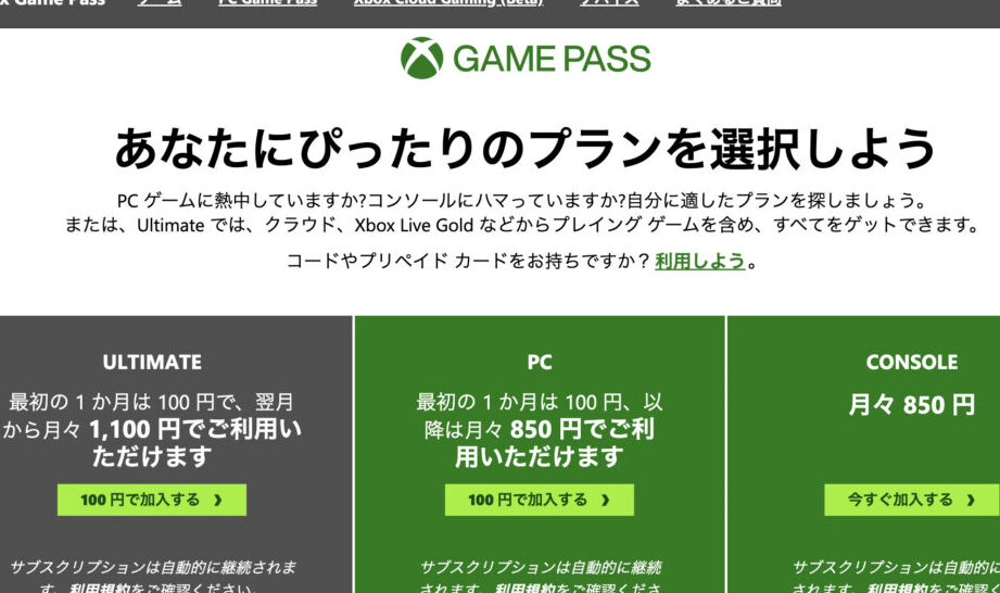 - Xbox Game Pass Ultimate: 月額1,650円で、最も充実したプランです。PCゲームも含まれ、EA Playへのアクセスも可能になります。