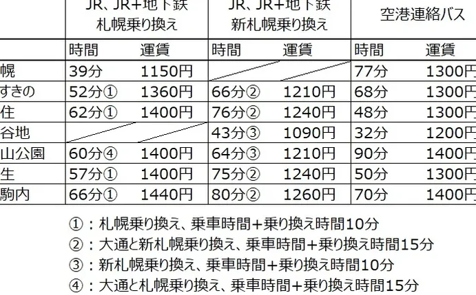 札駅から新千歳空港までの交通手段を比較すると、それぞれにメリットとデメリットが見えてきます。効率よく移動したい方や、予算に限りのある方にとって、適切な選択が重要です。以下に具体的な交通手段を見ていきます。