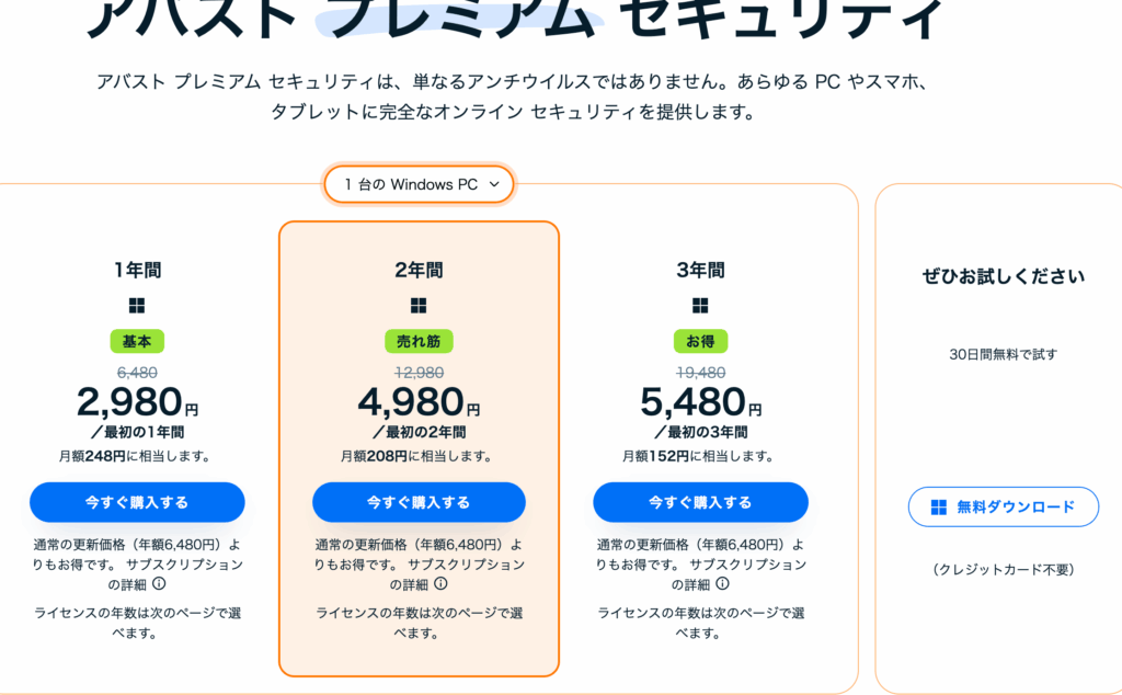 ウイルスバスターの料金はプランごとに異なる。具体的には以下のプランがあります: